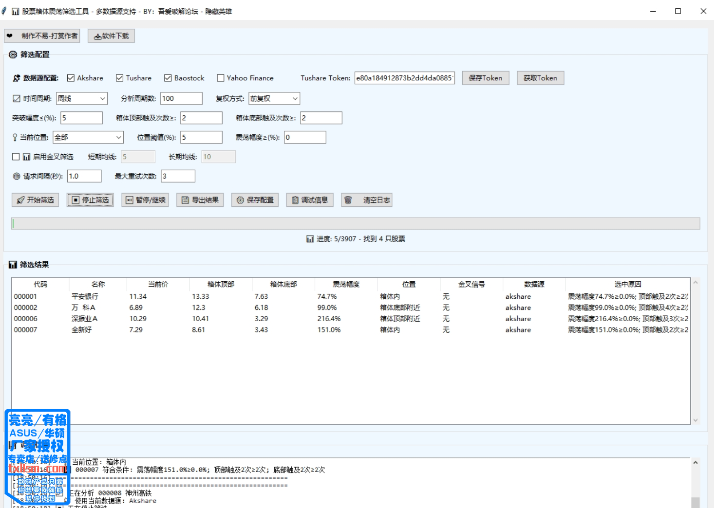 股票箱体震荡筛选工具,仅支持沪深股,不支持创业板可创板